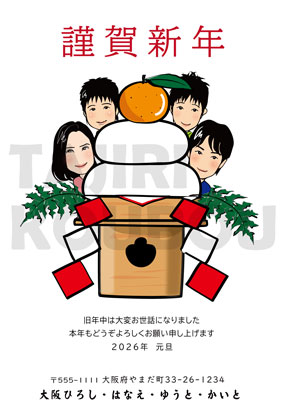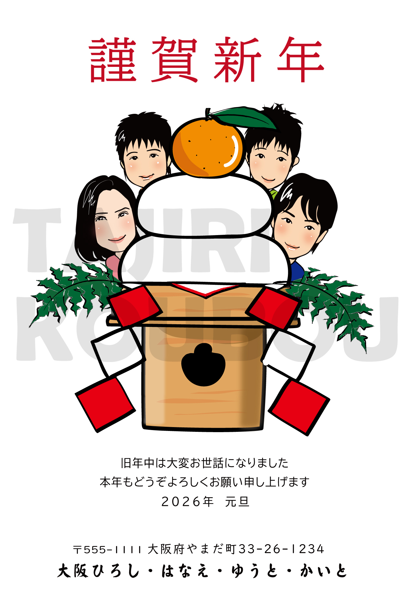 シンプルでインパクトある鏡餅のイラストの年賀状似顔絵です