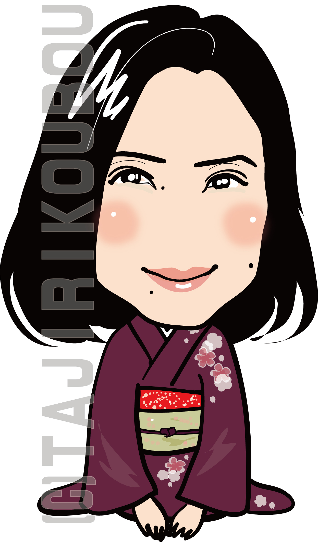 紫色の着物で正座をしている似顔絵イラストです。大人の方向け♪